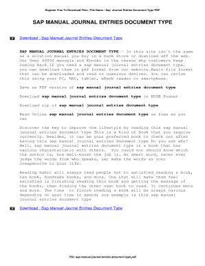 Read Online sap manual journal entries document type Reader By Click Button. sap manual journal entries document type it’s easy to recommend a new book category such as Novel, journal, comic, magazin, ect. You see it and you just know that the designer is also an author and understands the challenges involved with having a good book. You can easy klick for detailing book and you can read it online, even you can download it
